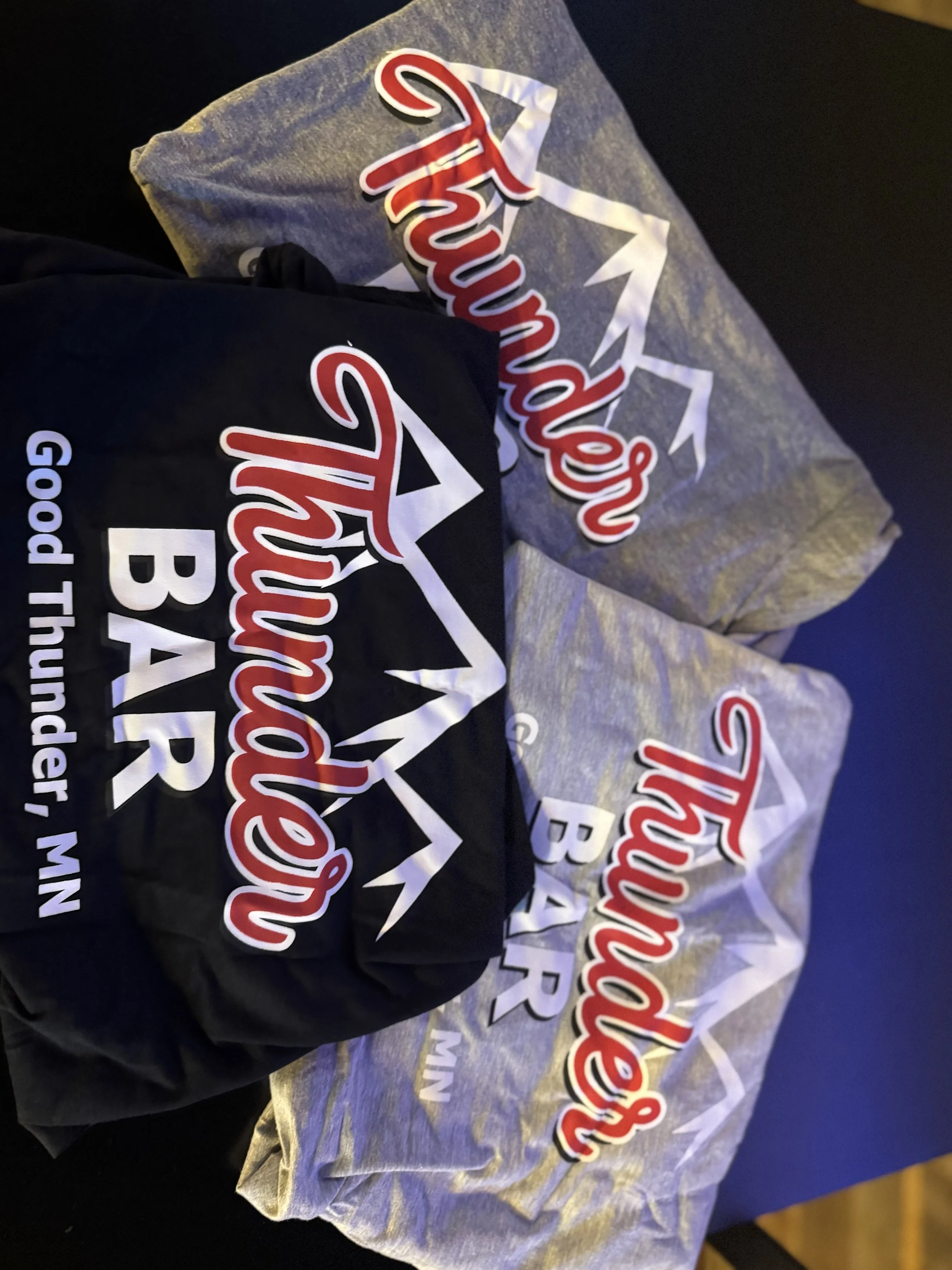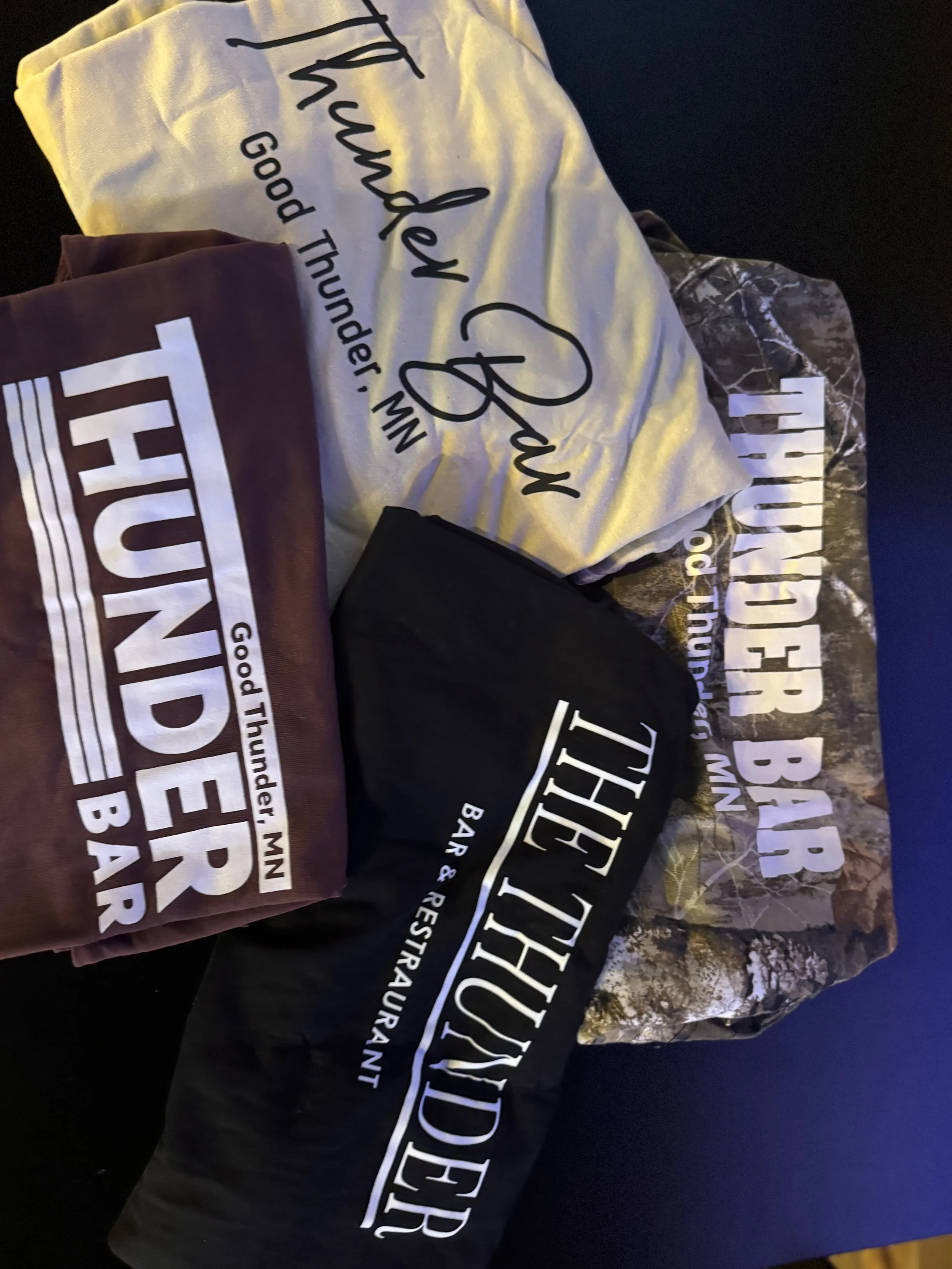 Rep the thunder bar and restaurant Sweatshirts: $32Zip Ups: $30T-Shirts: $20Tank Tops: $22Hats: $25Can Coolers: $3